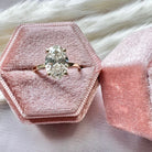 After selecting her perfect diamond this client decided to go with a delicate hidden halo and let the center stone speak for itself on a high polished gold band.