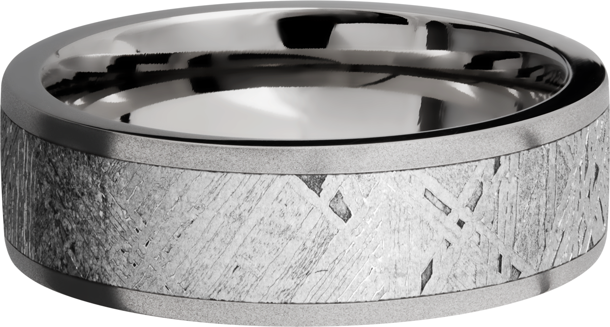 Titanium 7mm flat band with an inlay of authentic Gibeon Meteorite