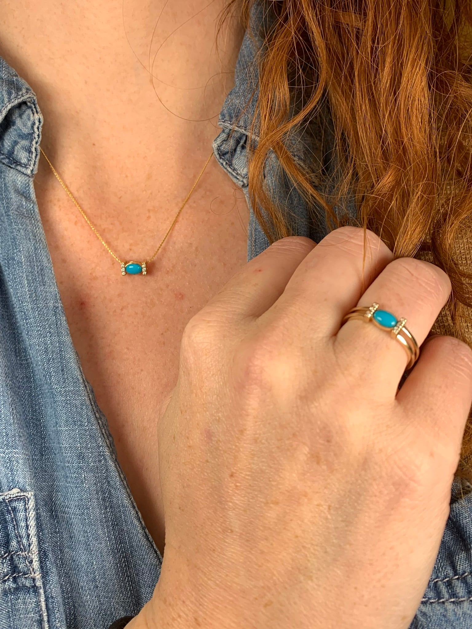 Adeline - Turquoise and Diamond Gold 2 Band Ring