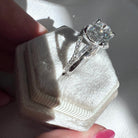 Truly one of a kind with a bypass allowing a straight wedding band to fit underneath completing this 3ct oval wedding set.